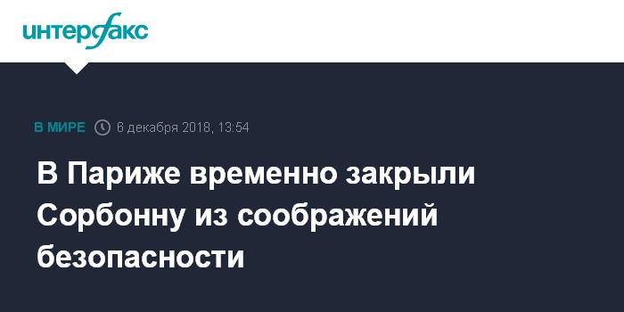 Москва. 6 декабря. INTERFAX.RU - Центральное здание известного французского университета Сорбонна, расположенного в Латинском квартале Парижа, закрыто в рамках мер безопасности.