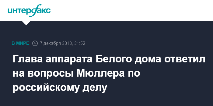 Глава аппарата Белого дома ответил на вопросы Мюллера по российскому делу