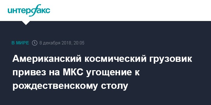 Американский космический грузовик привез на МКС угощение к рождественскому столу