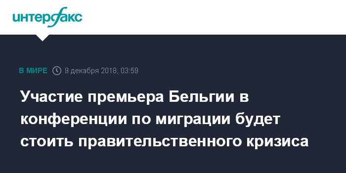 Москва. 9 декабря. INTERFAX.RU - После экстренного заседания в субботу вечером совета министров федерального правительства Бельгии по вопросу участия в глобальном пакте ООН по миграции страна оказалась на пороге правительственного кризиса.