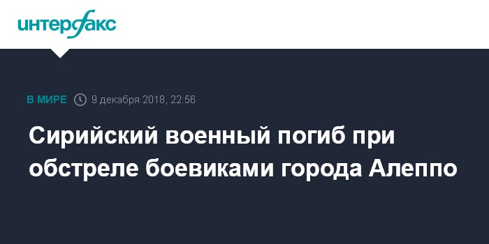 Сирийский военный погиб при обстреле боевиками города Алеппо