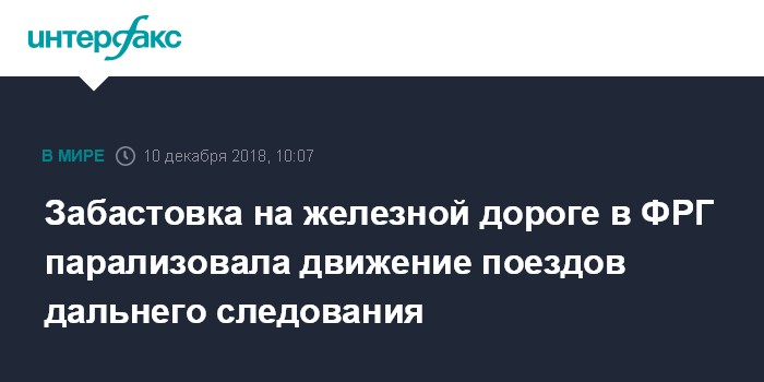 Москва. 10 декабря. INTERFAX.RU - Железнодорожная система Германии парализована в связи с предупредительной забастовкой работников отрасли, проходящей по всей стране, пишет в понедельник сайт издания Bild.