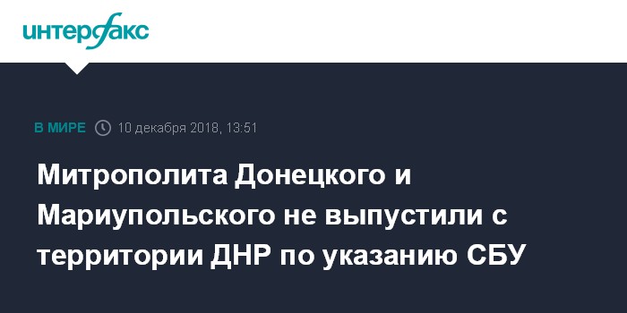 Митрополита Донецкого и Мариупольского не выпустили с территории ДНР по указанию СБУ