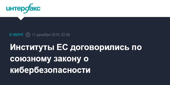 Москва. 11 декабря. INTERFAX.RU - Европейская комиссия сообщила в ночь на вторник, что достигла политического соглашения с Европарламентом и Советом ЕС по закону о кибербезопасности, который усилит мандат Европейского агентства сетей и информационной безопасности (ENISA).