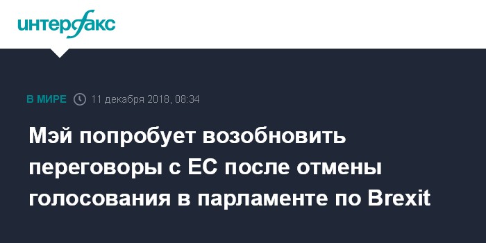 Мэй попробует возобновить переговоры с ЕС после отмены голосования в парламенте по Brexit