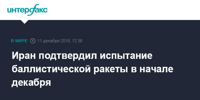 Москва. 11 декабря. INTERFAX.RU - Командующий военно-космическими силами иранского Корпуса Стражей Исламской революции (КСИР) бригадный генерал Амир Али Хаджизаде подтвердил информацию о недавнем испытании в Иране баллистической ракеты.