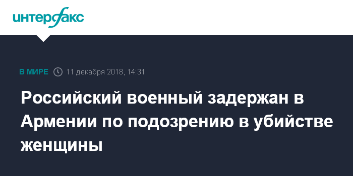 Российский военный задержан в Армении по подозрению в убийстве женщины
