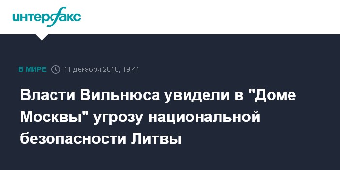 Москва. 11 декабря. INTERFAX.RU - Мэр Вильнюса Рямигиюс Шимашюс обратился в Департамент госбезопасности (ДГБ) по поводу "Дома Москвы" в столице Литвы и попросил проверить, не представляет ли проект этого учреждения угрозу для национальной безопасности, сообщило во вторник самоуправление города.