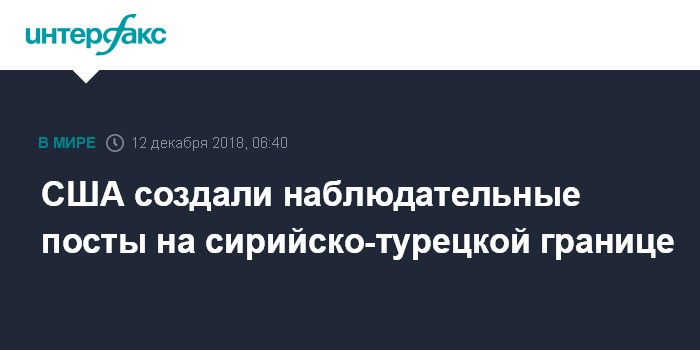 "По указанию министра Мэттиса (глава минобороны Джим Мэттис - ИФ) для обеспечения безопасности Турции - нашего союзника по НАТО - в северо-восточном районе Сирии, граничащим с Турцией, созданы наблюдательные посты",- говорится в распространенном заявлении представителя Пентагона.