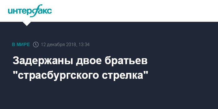 Москва. 12 декабря. INTERFAX.RU - Двое братьев подозреваемого в стрельбе на рождественском рынке в Страсбурге задержаны, сообщает в среду французская газета Le Figaro.