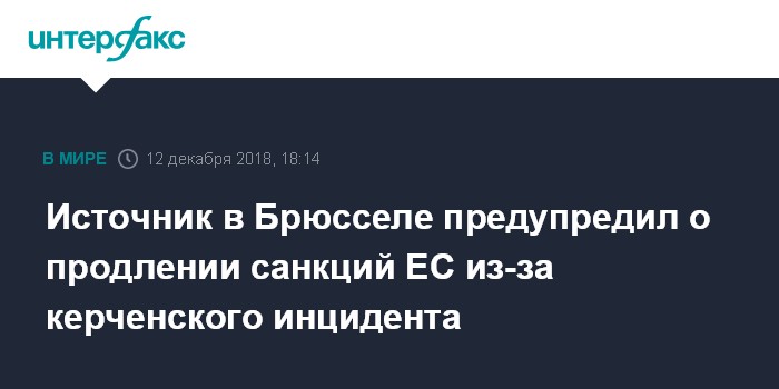Источник в Брюсселе предупредил о продлении санкций ЕС из-за керченского инцидента