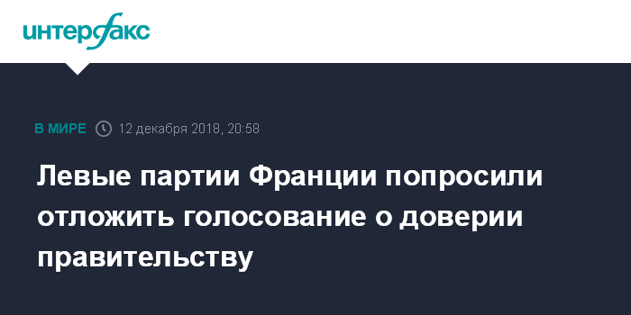 Москва. 12 декабря. INTERFAX.RU - Представители французских партий левого толка, которые ранее инициировали рассмотрение вопроса о вотуме недоверия правительству страны, призвали отложить намеченное на четверг голосование в парламенте, сообщают местные СМИ.