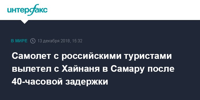 Самолет с российскими туристами вылетел с Хайнаня в Самару после 40-часовой задержки