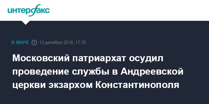 Московский патриархат осудил проведение службы в Андреевской церкви экзархом Константинополя