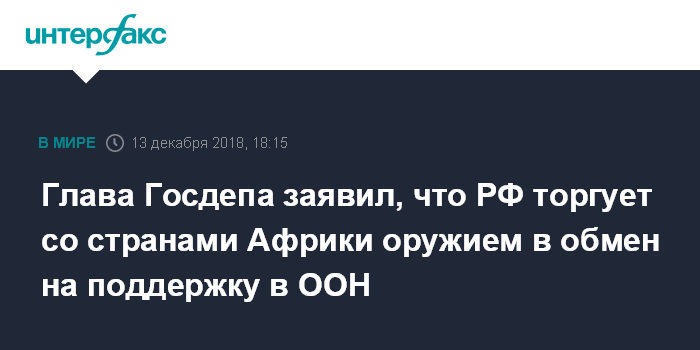 Глава Госдепа заявил, что РФ торгует со странами Африки оружием в обмен на поддержку в ООН