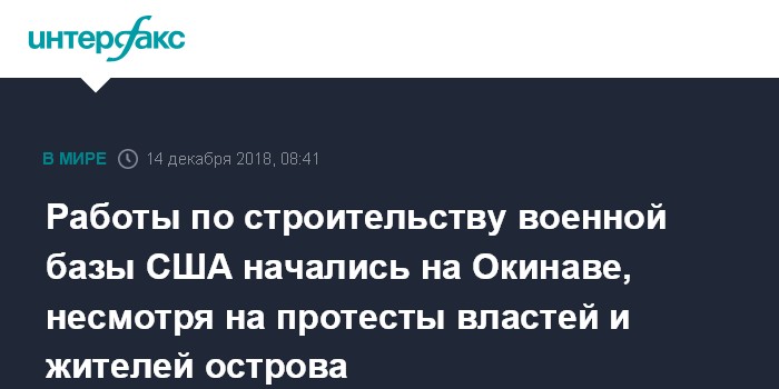 Работы по строительству военной базы США начались на Окинаве, несмотря на протесты властей и жителей острова