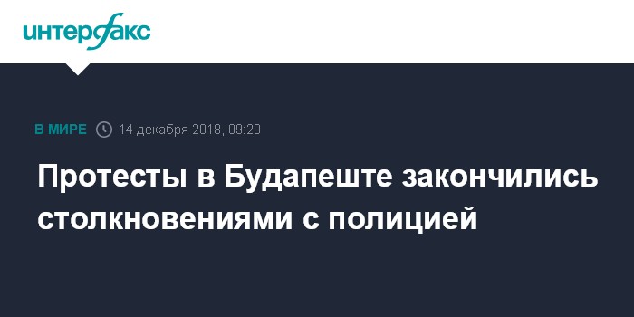 Москва. 14 декабря. INTERFAX.RU - Столкновения манифестантов с полицией произошли в ночь на пятницу перед зданием парламента в Будапеште, передает сербская радиостанция Б02.