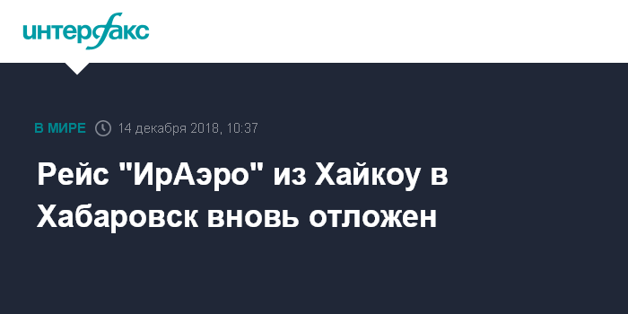 Рейс "ИрАэро" из Хайкоу в Хабаровск вновь отложен