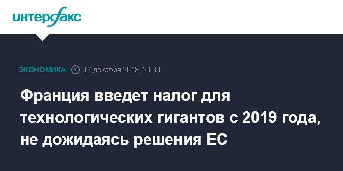 Франция введет налог для технологических гигантов с 2019 года, не дожидаясь решения ЕС
