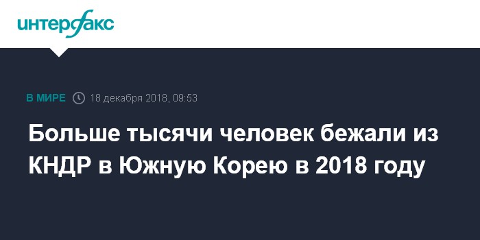 Москва. 18 декабря. INTERFAX.RU - Более тысячи северокорейских граждан бежали из КНДР в Южную Корею с начала 2018 года, сообщает в понедельник агентство "Ренхап" со ссылкой на южнокорейское министерство по делам объединения.
