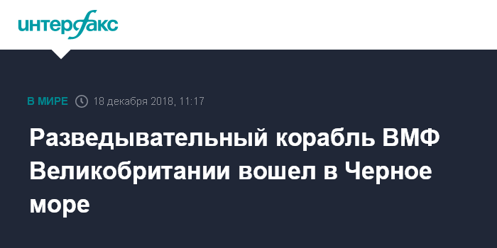 Между тем на фоне российско-украинского инцидента 25 ноября в Керченском проливе бывший главком Королевского ВМФ Великобритании призвал палату лордов пересмотреть решение Лондона об отправке в Черное море разведывательного корабля "Эко".