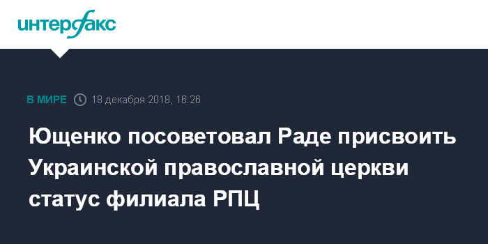 По словам Ющенко, Украинская православная церковь (Московского патриархата) должна быть переименована в филиал Русской православной церкви в Украине.