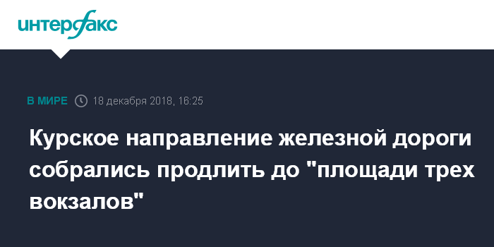 Москва. 18 декабря. INTERFAX.RU - Прорабатывается проект продления Курского направления железной дороги до "площади трех вокзалов", сообщил журналистам во вторник заместитель мэра Москвы по вопросам градостроительной политики и строительства Марат Хуснуллин.
