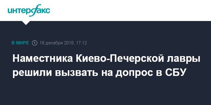 Москва. 18 декабря. INTERFAX.RU - Наместник Киево-Печерской лавры, митрополит Вышгородский и Чернобыльский Павел (Лебедь) в ближайшие дни будет вызван на допрос в Службу безопасности Украины в качестве свидетеля по делу о нарушении религиозных прав граждан, сообщила агентству "Интерфакс-Украина" спикер СБУ Елена Гитлянская.