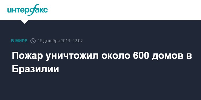 Москва. 19 декабря. INTERFAX.RU - Не менее 600 домов уничтожены в результате пожара в штате Амазонас в Бразилии, сообщает в среду Associated Press.