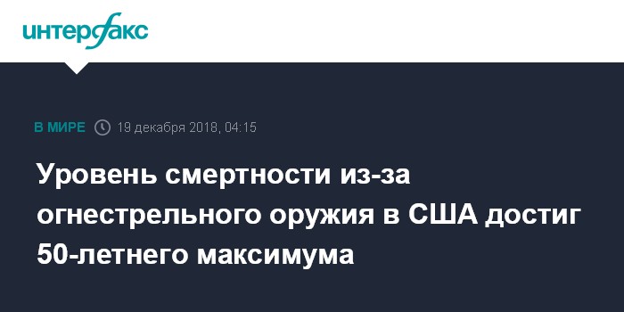 Москва. 19 декабря. INTERFAX.RU - Количество погибших в результате применения огнестрельного оружия в 2017 году в США достигло 50-летнего максимума, сообщает в среду New York Times.