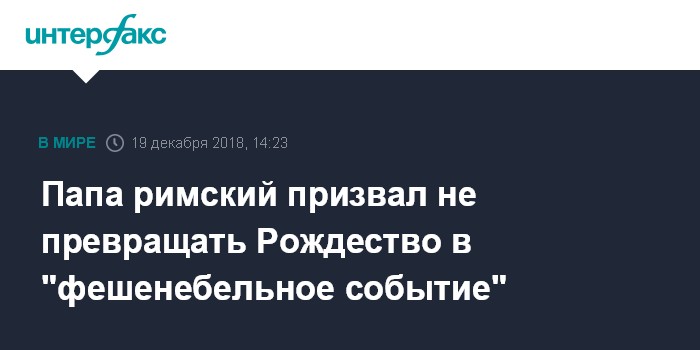 В ходе всеобщей аудиенции в среду он сказал, что "реклама говорит нам дарить друг другу все больше и больше новых подарков". "Но в чем заключается то празднование, которого ждет от нас Бог?" - добавил понтифик.
