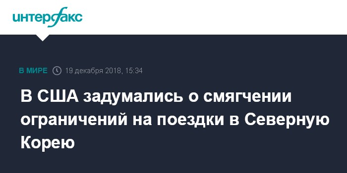 Москва. 19 декабря. INTERFAX.RU - Вашингтон рассматривает возможность смягчить ограничения на поездки в Северную Корею, чтобы таким образом облегчить поставки гуманитарной помощи, сообщает в среду агентство Associated Press со ссылкой на специального представителя госдепа по вопросам КНДР Стивена Бигана.