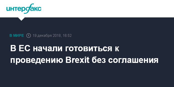 Москва. 19 декабря. INTERFAX.RU - Еврокомиссия основательно готовится к варианту Brexit без соглашения с Великобританией и приступает к реализации специального плана действий для сценария "без сделки".