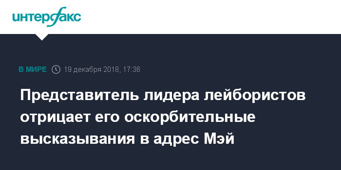 Москва. 19 декабря. INTERFAX.RU - Представитель лидера оппозиционной Лейбористской партии Джереми Корбина заявил, что тот не высказывался оскорбительно о британском премьер-министре Терезе Мэй, сообщает в среду британский телеканал Sky News.