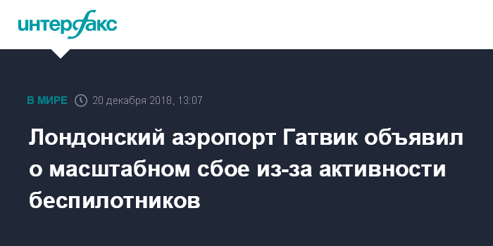 "Все рейсы в Гатвик и из него приостановлены из-за продолжающейся активности беспилотников вблизи аэропорта. К сожалению, существенные задержки и отмены затронут все рейсы сегодня", - говорится в сообщении аэропорта.