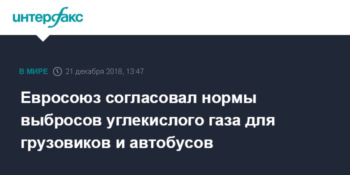 Москва. 21 декабря. INTERFAX.RU - Европейский союз намерен значительно ограничить допустимые нормы выброса углекислого газа не только у легковых автомобилей, но и у грузовиков и автобусов.