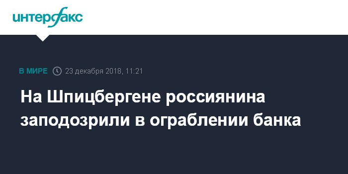 Ранее СМИ сообщили со ссылкой на сайт губернатора архипелага Шпицбергена, что утром 21 декабря 29-летний гражданин России с винтовкой проник в здание банка Sparebank 1 в Лонгиербюене и похитил 70 тыс. норвежских крон. В тот же день подозреваемый был задержан и доставлен в норвежский город Тромсё.