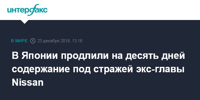 Москва. 23 декабря. INTERFAX.RU - Судебные власти Японии согласились в воскресенье продлить на 10 суток срок содержания под стражей бывшего руководителя Nissan Карлоса Гона, сообщает агентство Associated Press.