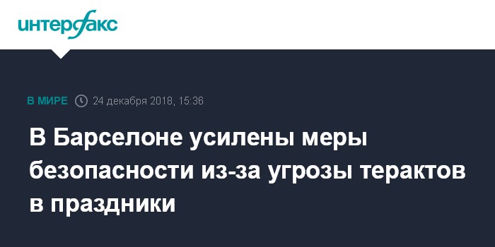 Москва. 24 декабря. INTERFAX.RU - Власти Барселоны в понедельник усилили меры безопасности в городе после того, как госдепартамент США предупредил об угрозе терактов в городе во время рождественских и новогодних каникул.