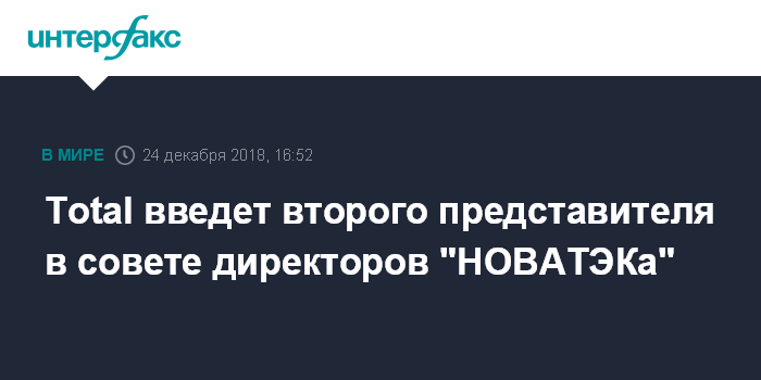 Total введет второго представителя в совете директоров "НОВАТЭКа"