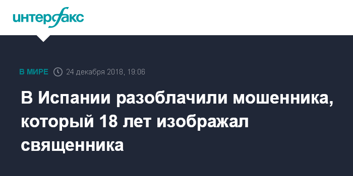 В Испании разоблачили мошенника, который 18 лет изображал священника