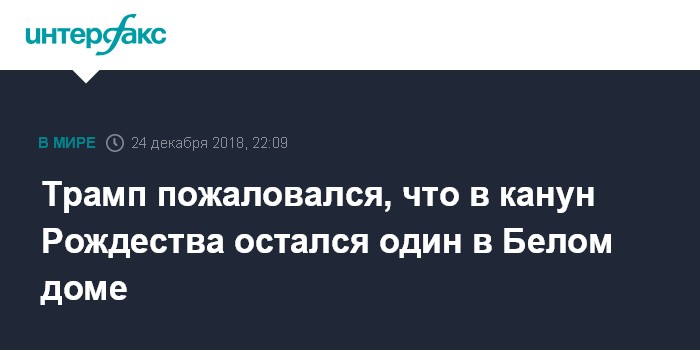 Москва. 24 декабря. INTERFAX.RU - Президент США Дональд Трамп в канун католического Рождества с иронией заявил об одиночестве и раскритиковал демократов из-за их нежелания выделять финансирование проекту стены на границы с Мексикой.