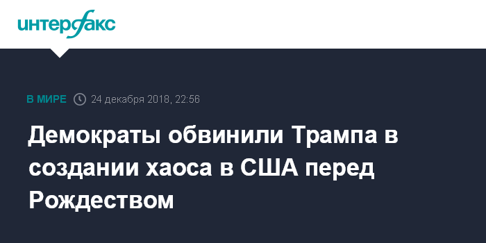Москва. 24 декабря. INTERFAX.RU - Лидеры демократов в сенате и палате представителей в понедельник обвинили президента США Дональда Трампа в том, что тот создает хаос накануне Рождества.