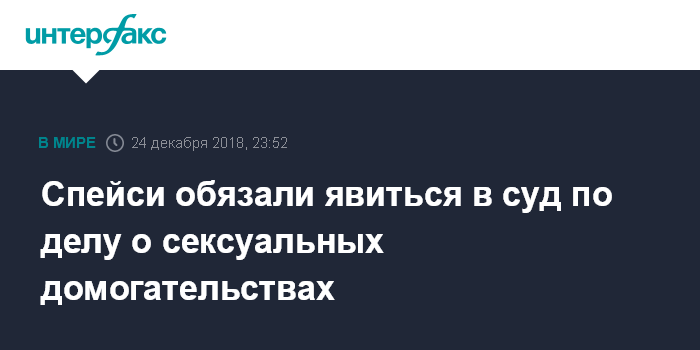 Москва. 24 декабря. INTERFAX.RU - Актеру Кевину Спейси направили повестку в суд в городе Нантакет штата Массачусетс с требованием явиться 7 января 2019 года на слушание по делу о сексуальных домогательствах, сообщила в понедельник газета The Boston Globe.