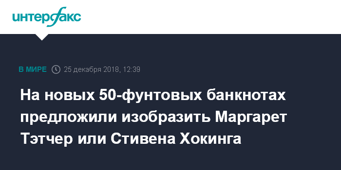 На новых 50-фунтовых банкнотах предложили изобразить Маргарет Тэтчер или Стивена Хокинга