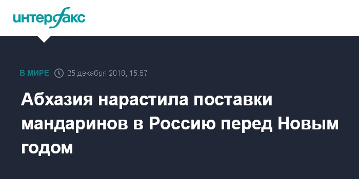 Москва. 25 декабря. INTERFAX.RU - Из Абхазии в Россию в предновогодние дни вывезено более 23 тысяч тонн мандаринов, сообщил президент республики Рауль Хаджимба.
