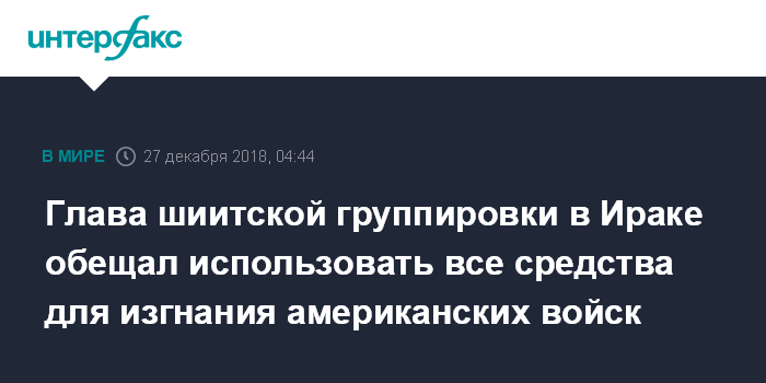 Москва. 27 декабря. INTERFAX.RU - Глава иракской шиитской группировки "Асаиб Ахль аль-Хакк" Каис аль-Казали после незапланированного визита президента США Дональда Трампа в Ирак обещал изгнать американские войска из страны.