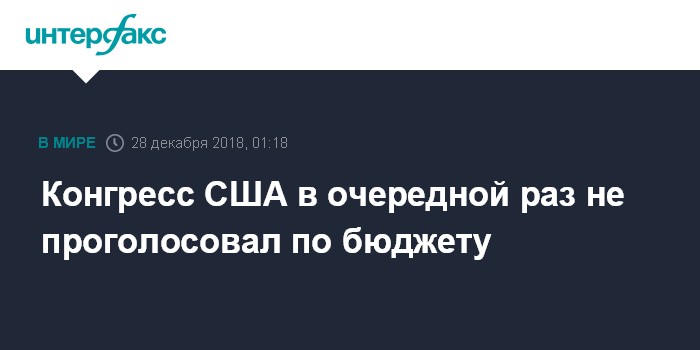 Москва. 28 декабря. INTERFAX.RU - Верхняя и нижняя палаты Конгресса США в очередной раз не проголосовали по бюджету страны, следует из трансляции заседания на сайте законодательного органа.