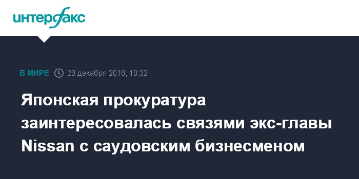 Москва. 28 декабря. INTERFAX.RU - Прокуратура Японии в ходе расследования по делу экс-главы Nissan Motor Co. Карлоса Гона заинтересовалась его деловыми связями с саудовским бизнесменом Халедом аль-Джуффали, который руководит бизнесом Nissan на Ближнем Востоке, пишет в четверг Wall Street Journal со ссылкой на информированные источники.