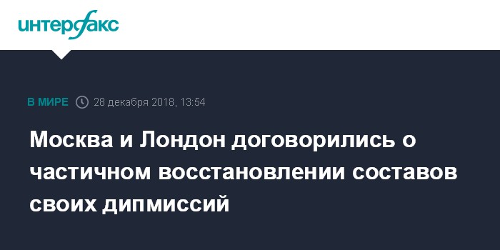 Ранее в этом месяце в посольстве РФ в Великобритании "Интерфаксу" заявляли, что Москва и Лондон ведут переговоры о частичном восстановлении дипломатического состава миссии в двух столицах, однако британская сторона продолжает тормозить восстановление полноценного функционирования загранучреждений.